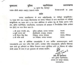 न्यूज एंड नॉक संवाददाता, देहरादून। किसान सुखवंत सिंह के सुसाइड मामले में पुलिस महकमे ने बड़ी कार्रवाई की है। आईजी एसटीएफ निलेश आनंद भरणे की अगुवाई में पांच सदस्यीय एसआईटी गठित की गई है। इसमें एसपी चंपावत अजय गणपति, सीओ टनकपुर वंदना वर्मा, इंस्पेक्टर दीवान सिंह बिष्ट और दरोगा मनीष खत्री सदस्य बनाए गए हैं। इससे पहले एसएसपी उधमसिंहनगर मणिकांत मिश्रा ने आईपीएस नीहारिका तोमर की अगुवाई में एसआईटी गठित की थी।