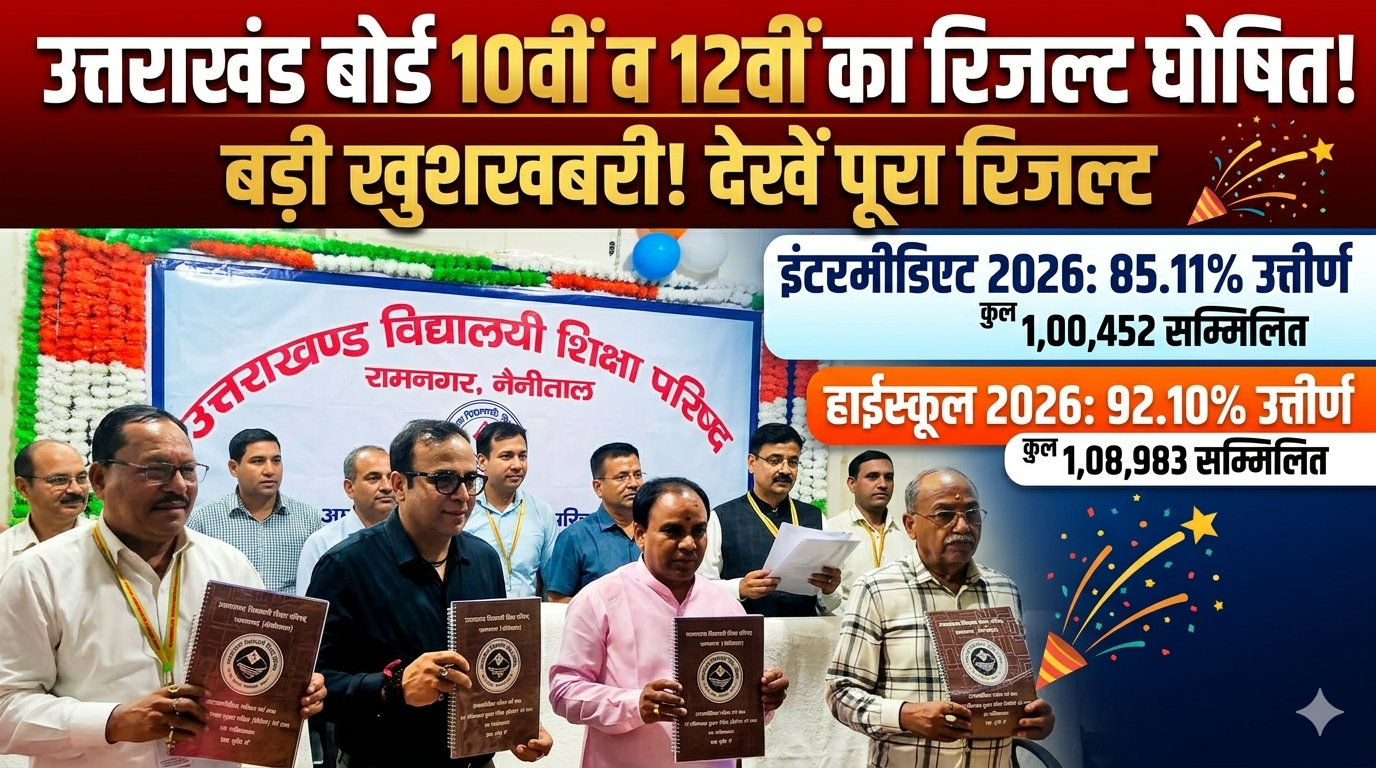 न्यूज एंड नॉक डेस्क, रामनगर। उत्तराखंड विद्यालयी शिक्षा परिषद (UBSE) ने हाईस्कूल और इंटरमीडिएट वार्षिक परीक्षा का परिणाम आधिकारिक रूप से घोषित कर दिया है। शिक्षा मंत्री डॉ धन सिंह रावत, विधायक दीवान सिंह बिष्ट और परिषद के सभापति डॉ. मुकुल कुमार सती ने परीक्षाफल जारी किया। इस वर्ष भी छात्राओं ने बाजी मारी है, जबकि जनपदों में बागेश्वर का प्रदर्शन सबसे शानदार रहा।